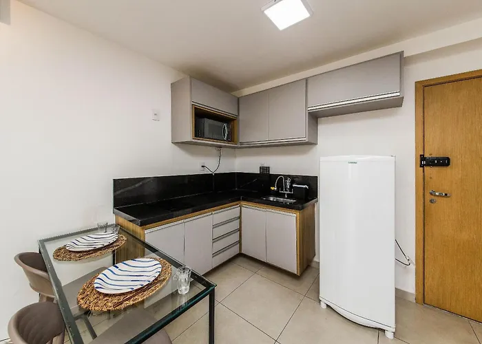 Os hóspedes do Studio La Vista Piscina Academia Coz Completa podem utilizar comodidades de auto-atendimento, incluindo cozinha comum, e desfrutar das suas refeições em zona de refeições.